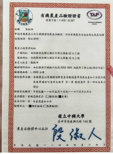 產地:南投縣魚池鄉澀水山區「正美茶棧」茶園