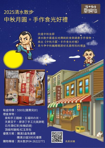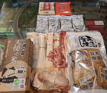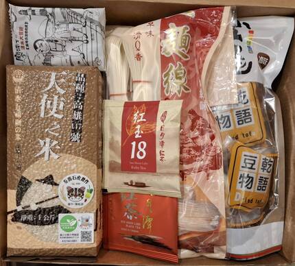 禮盒食物:泉和手工麵線、五福圳の米、天素豆干、廖添丁手工元氣餅乾